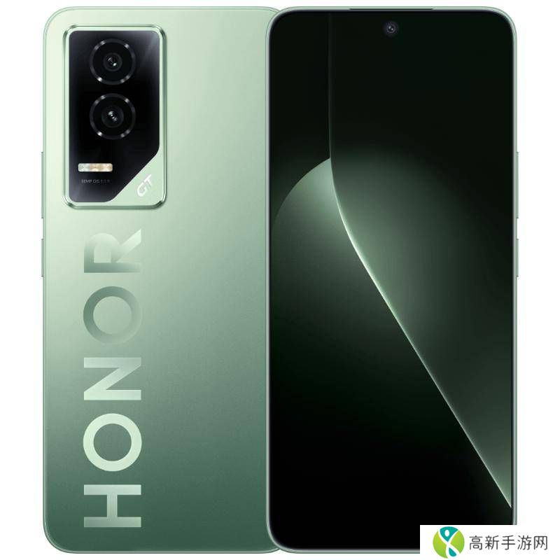 “极光绿”配色版本的荣耀GT手机,在色彩运用和设计风格上与前两款配色——“幻影黑”和“冰晶白”截然不同。此次并未延续之前的拼色设计,而是大胆采用了横置亮面的“HONOR”大LOGO,彰显出独特的品牌魅力。镜头模组右下角的“GT”标识,在这一配色下呈现为银白色,与整体设计完美融合。
