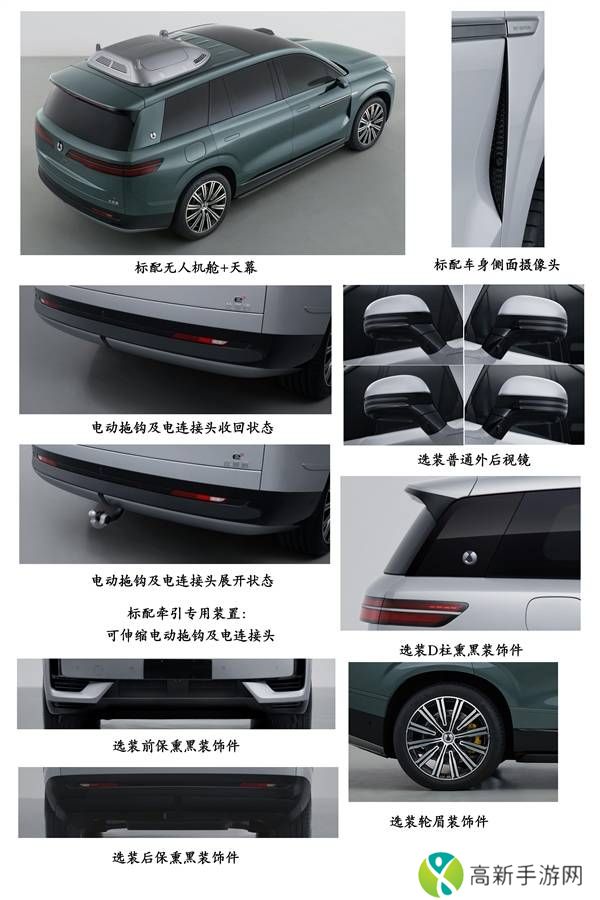 新车还配备了牵引专用装置,包括可伸缩电动拖钩及电连接头,充分满足了车主拖挂房车等户外活动的需求。在选配装置方面,腾势N9同样提供了丰富的选择,如普通外后视镜、D柱熏黑装饰件、前后保熏黑装饰件、翼子板熏黑装饰件及配套字标、轮圈、电动侧踏板、无侧踏板以及不同颜色制动卡钳等,让车主可以根据自己的喜好进行个性化定制。