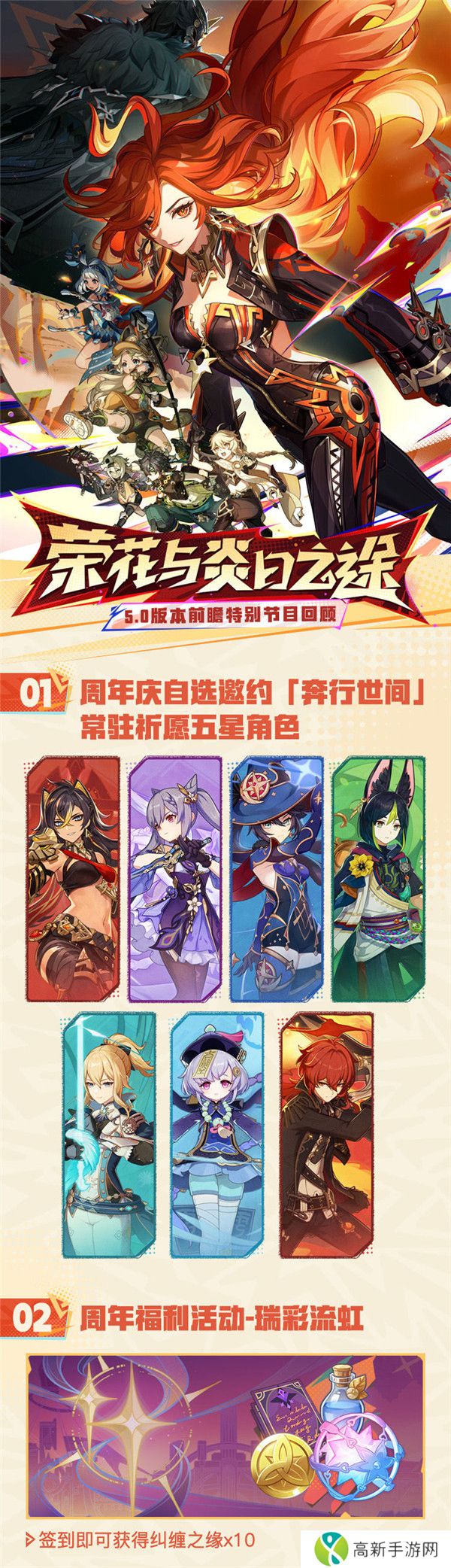 官方承诺自5.0版本起,每年的周年庆庆典都将复刻这一盛事,让常驻5星角色的自选成为玩家们的周年福利。而且随着游戏世界的不断拓展,常驻角色阵容的持续壮大,未来卡池中的可选角色也将更加丰富多样,让每一次选择都充满期待与惊喜!
