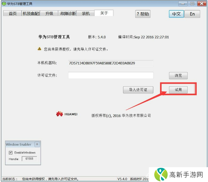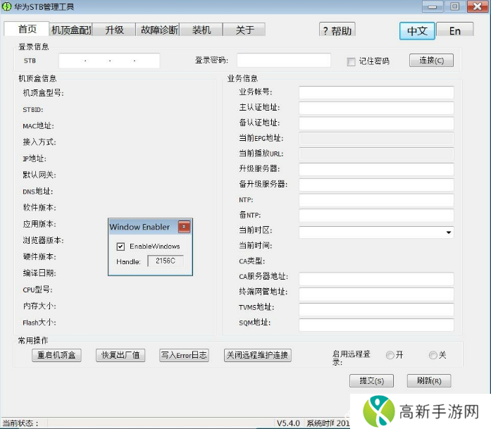 很多网友反馈华为悦盒连接STB时出现“非发链接或用户名和密码错误”,STB无法连接盒子,其实是STB版本太低,STB4.0.3版本已无法连接最新版系统,需更新至STB5.4.0版本即可。STB连接成功后参考 傻瓜式破解教程 (见结尾)STB7.0破解文件链接:https://pan.baidu.com/s/1cqhx0LjbXoajSi7OC8N6nQ 提取码:s0uo 备选链接1:https://share.weiyun.com/4MrnFhMm 密码:3i4ikj备选链接2:https://115.com/s/sw3vir03z1i# 访问码:y677适用型号:EC6108V9_V9U_V9E_V9A_V8,EC6109U,暂不适用EC6110M解决教程如下:1、打开文件夹中:enabler.exe