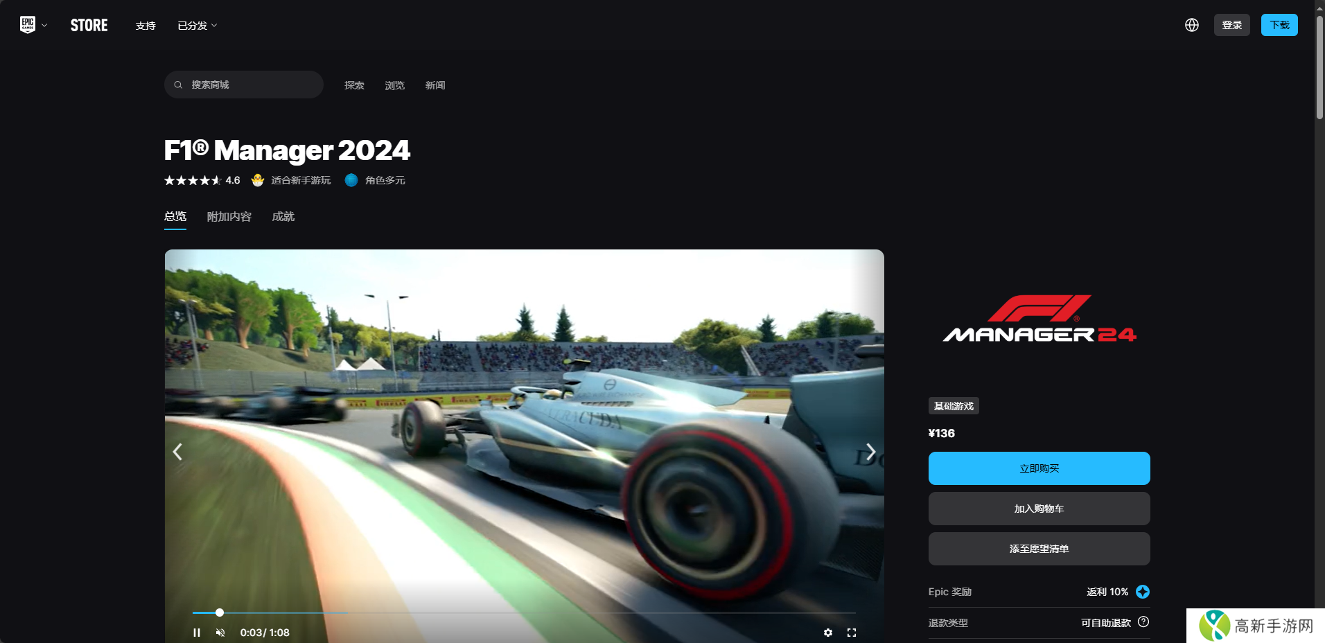 EPIC平台购买链接:https://store.epicgames.com/zh-CN/p/f1-manager-2024-fe51bd。