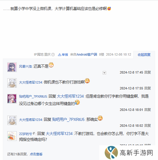 不少网友对此表示理解,认为许多女性玩家平时不接触游戏,面对复杂的键盘操作难免手忙脚乱。但也有人认为,一些只需简单学习即可掌握的基础操作,却被一些女玩家诟病成为游戏的缺点,不少网友对此表示十分无语,有玩家吐槽道:“这些操作真的很基础,感觉她们完全没学过微机课,键盘的手摆位置离谱到令人无语。”