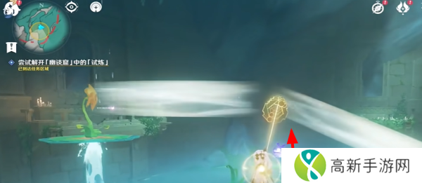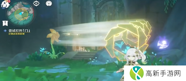 2、传送到任务点,先用技能开启向日葵,穿越花环。