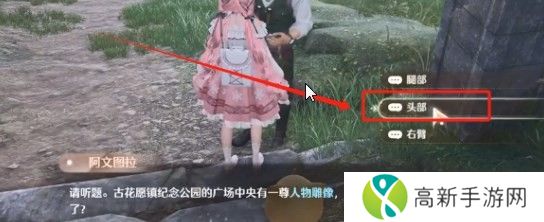 达到任务地点,找到下图npc进行对话接取任务。npc的问题答案是:头部。