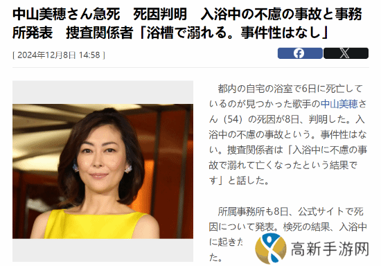中山美穗死因公布:洗澡时意外溺亡 并非自杀