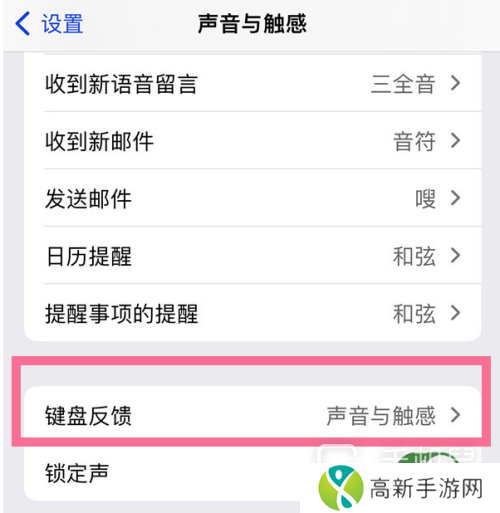 2、在声音与触感页面中,选择【键盘反馈】进入。
