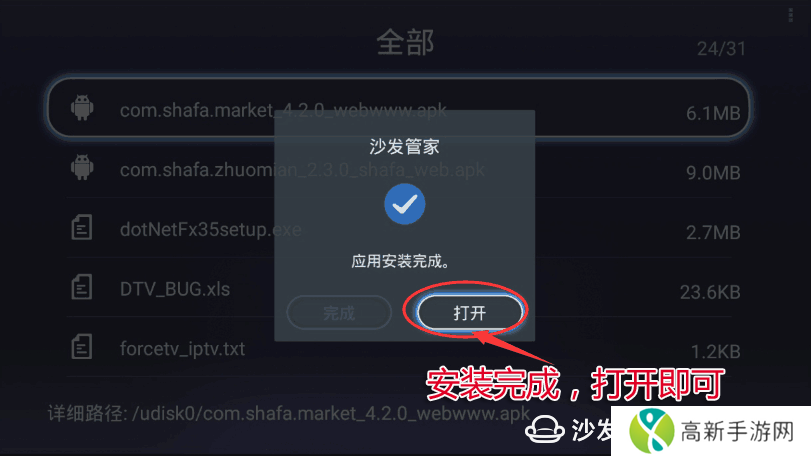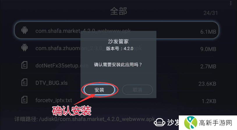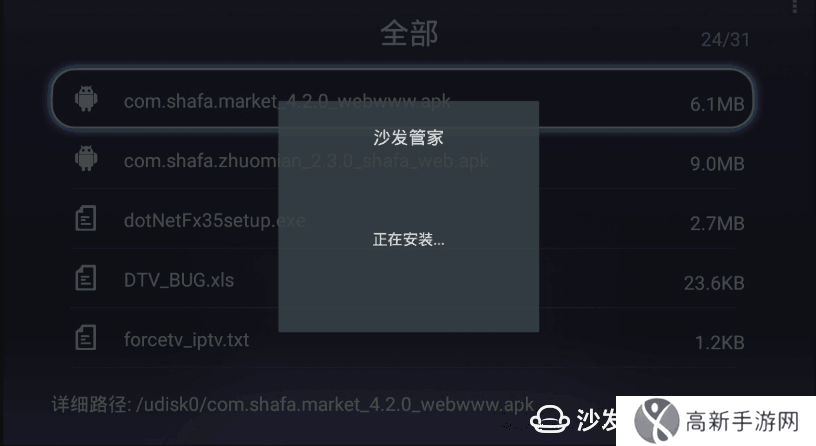 爱芒果32MQ1盘安装第三方应用教程,爱芒果32MQ1其他型号可以参考此教程。【安装流程】①下载沙发管家APK并复制到U盘→②将U盘插入电视里→③进入媒体中心→④进入U盘管理→⑤找到沙发管家APK→⑥