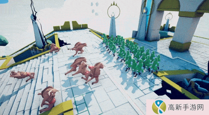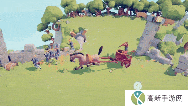 战斗场景中的引擎在真实物理规则的基础上增添了一些 “无厘头” 风味。比如,战马和士兵可以随时“芜湖起飞”,像炮弹一般砸入敌军阵营,化身体为最大武器!