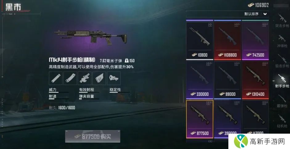 副武器推荐Mk14,这把枪是射手步枪,调整为自动开火模式时伤害非常高。