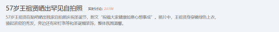 截至发稿前,“57岁王祖贤晒出罕见自拍照”词条登上了百度贴吧热议榜的第二名,引来众多网友围观。网友们纷纷为王祖贤送上了祝福,表示:“圣诞快乐!”并求翻牌,有网友还希望王祖贤能够补一张戴圣诞帽子的照片。