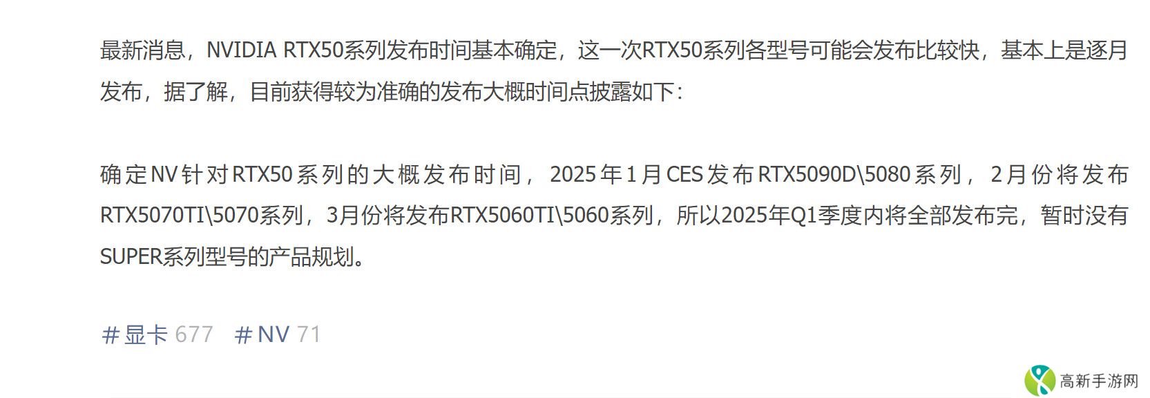 这意味着以上所有显卡都将在2025年第一季度发布,目前英伟达暂未准备Super系列。