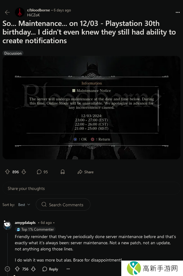 而且最近这款游戏“复活”似乎又有了更多的希望。这款 2015 年推出的游戏就在今天(12月 3 日)进行了维护并短暂的关闭了网络服务。一些粉丝似乎又重新燃起了希望,然而一位老粉指出,这是每年都会在 PlayStation 周年当天进行的例行维护,并不意味着会有人核心内容。