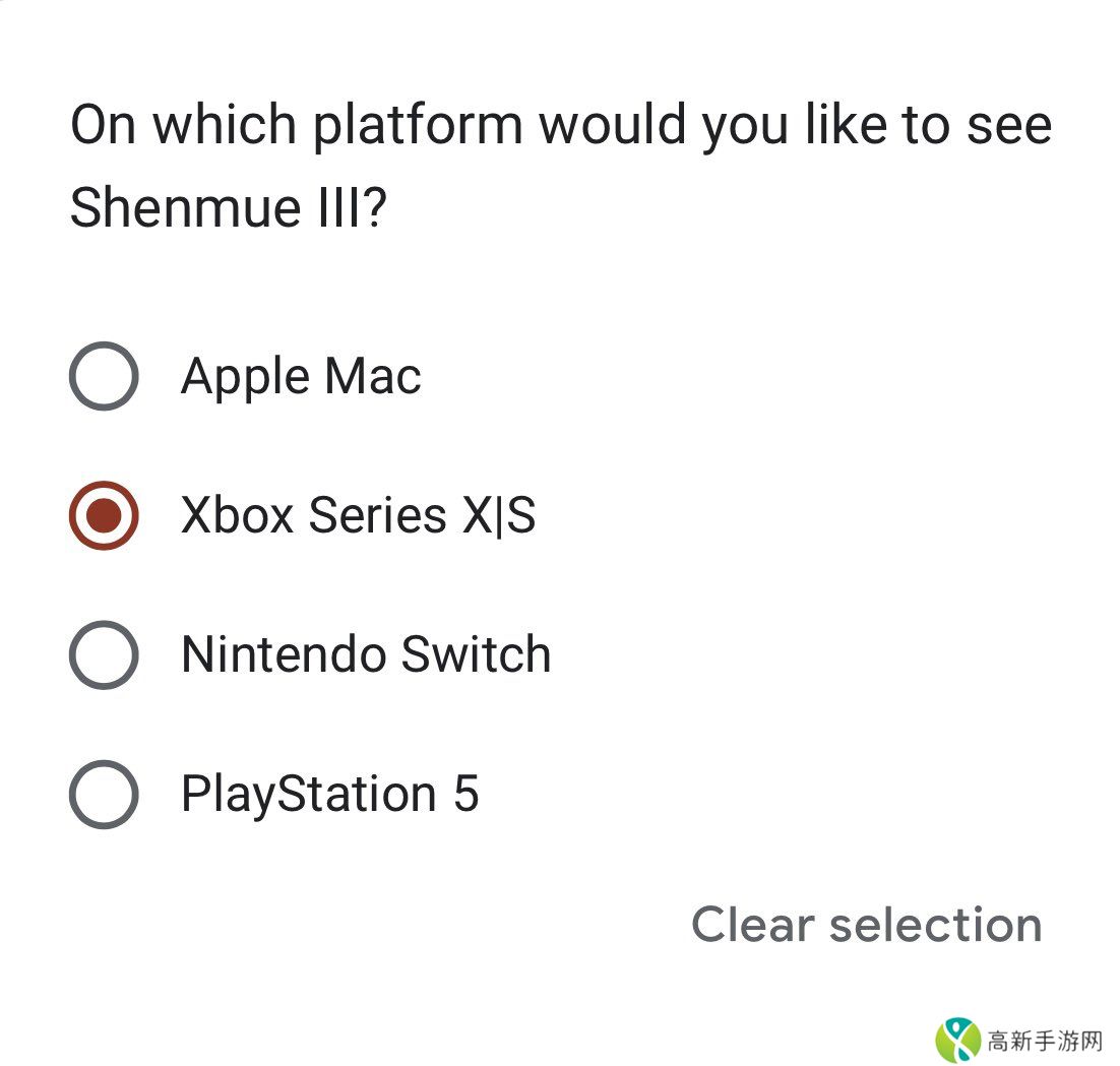今年11月,《莎木3》的发行权易手,从Deep Silver变成了ININ Games,而现在这个新的发行商发布了调查,想要知道其他平台的玩家(Xbox/Switch等)是否想要《莎木3》这款游戏。