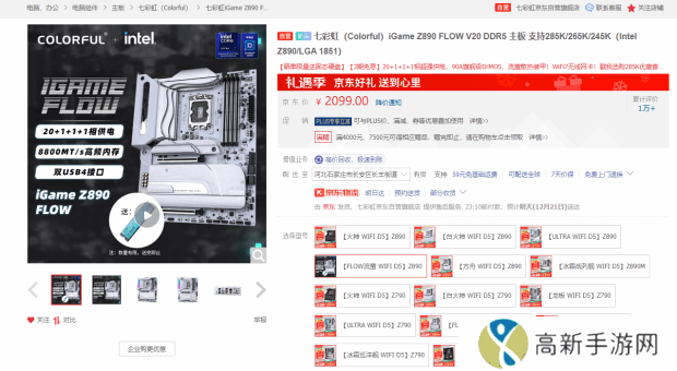 七彩虹iGame Z890 FLOW V20主板采用20+1+1+1项供电设计,8层低损耗PCB,90A高规格DrMos,可轻松驾驭酷睿Ultra 9 285K处理器。主板拥有1个PCIe 5.0 M.2和4个PCIe 4 M.2插槽。采用8+8Pin CPU供电,支持最新的Intel酷睿Ultra 285K/265K/265KF处理器,支持WiFi 7,支持PCIe 5,内存支持DDR5-8800MHz。 该主板的当前售价为2099元,支持3期免息,同时晒单限量送1TB PCIe 4.0 SSD。