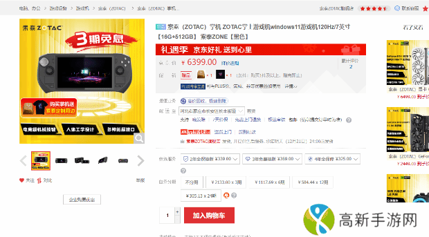 索泰ZONE游戏掌机16GB+512GB版本的当前售价为6399元。