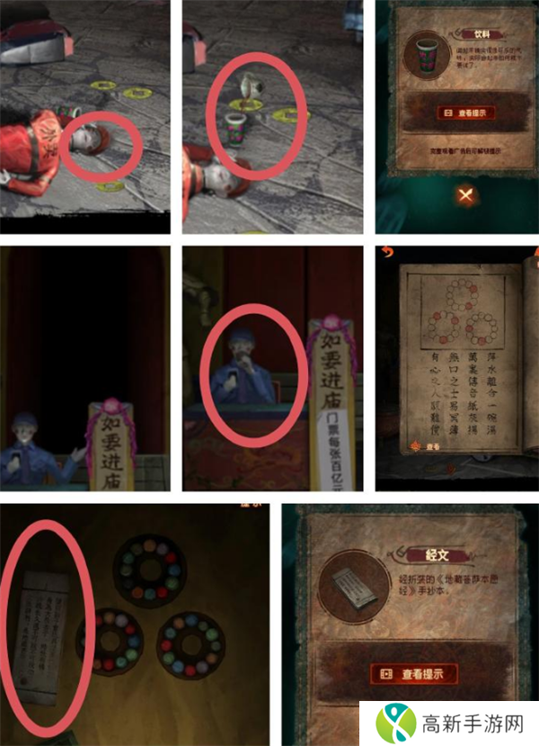 咖啡馆大门剪纸和马面雕像吊饰位置是解开牛头雕像吊饰的关键。