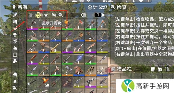 2、每种物品都有自己的品质,这个时候可以选中左上角的:显示开发块,就可以进行游戏品质的刷新了~
