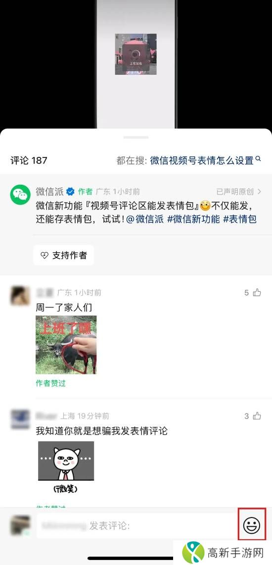 当前位置:首页>游戏资讯> 微信新功能加一!视频号评论区大升级:可以斗图了