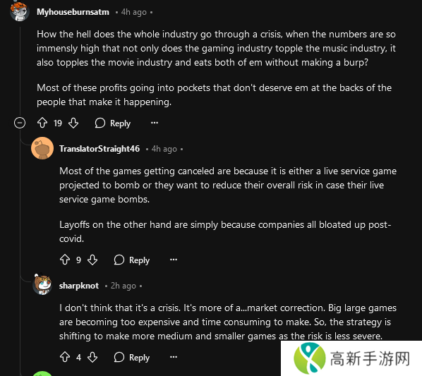 在讨论关于近期裁员时游戏公司不断反复提到的“行业危机”时,一些玩家表达了自己的看法,表示搞不懂为啥这些公司总是提这一点,但是实际上有很多游戏都非常成功。