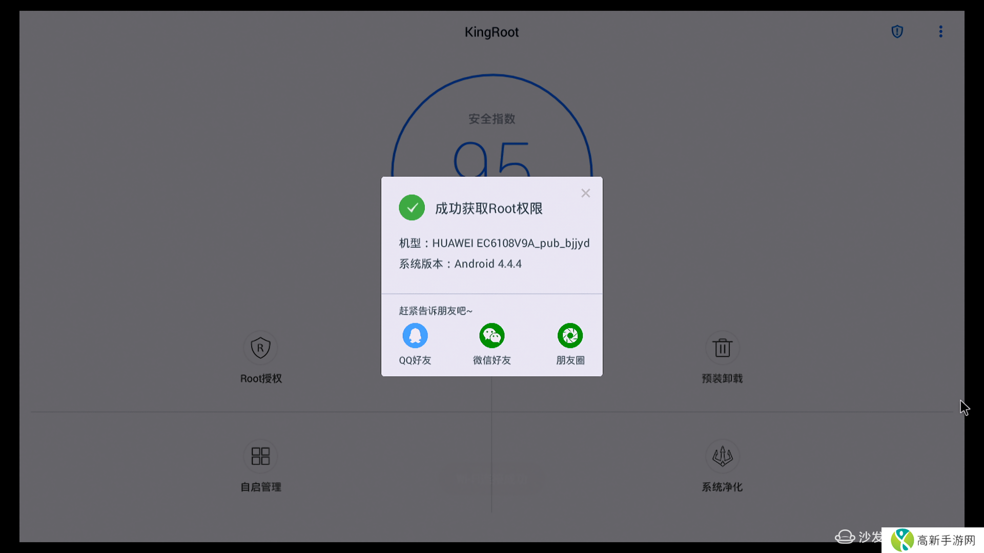 (1)kingroot 针对Android(安卓)系统一键获取ROOT权限的软件,分为手机、PC两个版本,可分别于手机和电脑端操作获取ROOT权限,华为悦盒使用手机版,一次性ROOT成功,