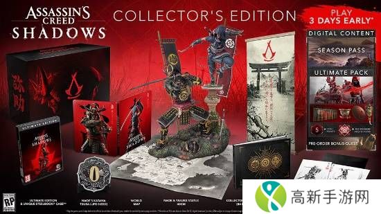 《刺客信条:影》实体典藏版也含有弥助&奈绪江的双人手办,不过由于是在延期前公布的,因此典藏版内容可能会发生变化。目前育碧仍未再次开启游戏预购。