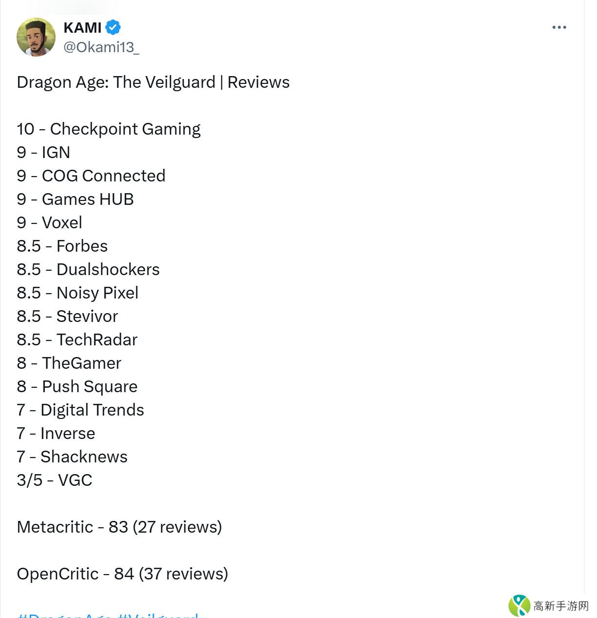 《龙腾世纪:影障守护者》媒体评分出炉,目前PS5版游戏Metacritic上收录了51家媒体评分,均分84分。不少媒体给出满分评价,比如Eurogamer,Game Rant,Press Start Australia等。但也有部分媒体给出了低分,如Shacknews 7分,Inverse 7分,GameSpot 7分,VGC 6分。