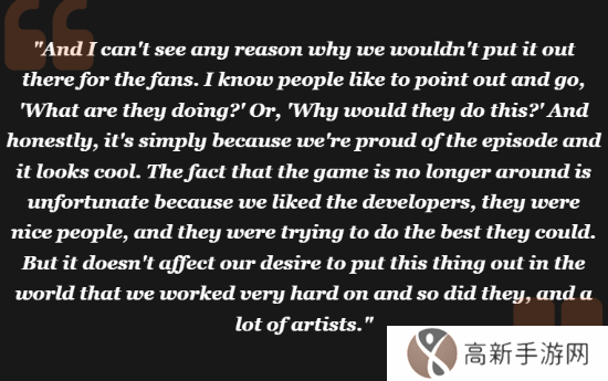 米勒强调:“我看不出任何理由不把它呈现给粉丝。我们为这集感到自豪,它很酷,我们为此付出了很多努力。”他还提到,虽然游戏的失败令人遗憾,但这并不会减少他们展示这集的热情。