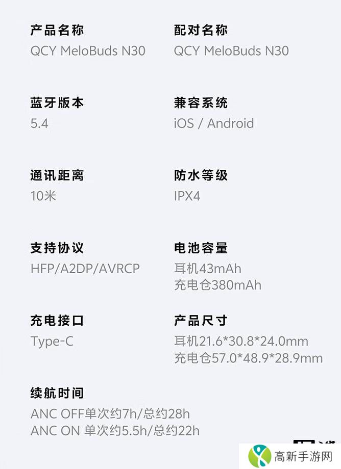 以下是QCY Melobuds N30耳机的详细参数信息: