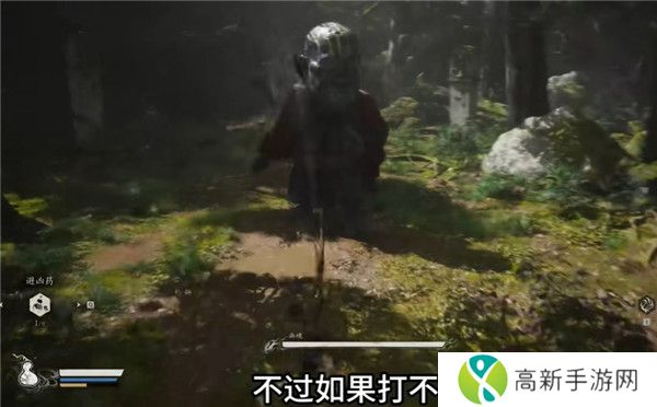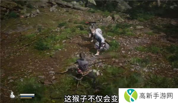 8.再往前走会遇到一个牯护院怪物,他的前摇很长,打不过土地公会释放定身术帮助猴子,即是花果山来的故人教你一招,手伸出来,这样子主角天命人学会了第一个技能定身法,将手一指,将对手定在原地不得动弹。