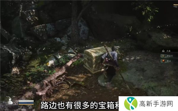 6.“且住,休得往前”遇到两只小怪,直接打,走过朱桥这里就是苍狼林,长按右键可以蓄力重击。干掉这个妖怪正好升级获得技能点,可以提升属性或者棍法,选择解锁移花棍步,伤害不高,但是可以阻挡飞行道具,游戏中没有地图,只有自己摸索。