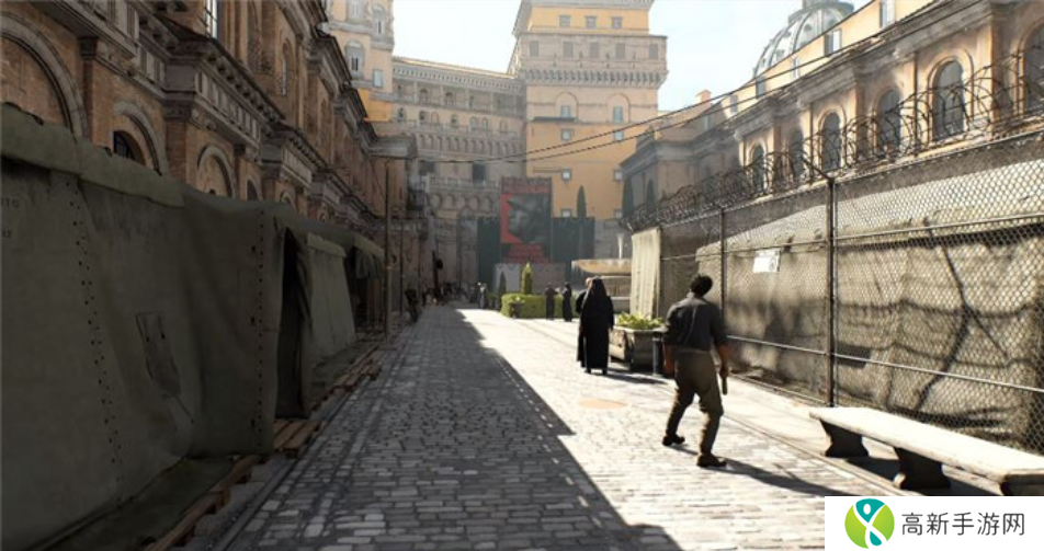 前往梵蒂冈邮局的路在两顶帐篷之间的隧道里。隧道的另一端,你会发现街道被士兵封锁,教士们正在和卫兵争执。即便你和士兵们发生冲突(虽然不推荐这样做),大门仍然是关闭的,你需要找到其他的路径。