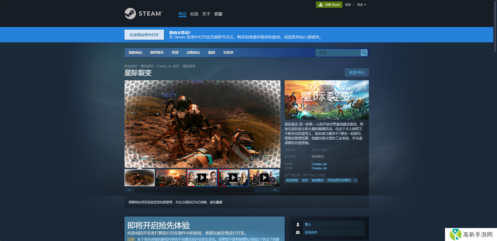 Steam平台需要先安装Steam平台,之后注册一个账号登录,然后搜索“星际裂变”进入商店购买页面。