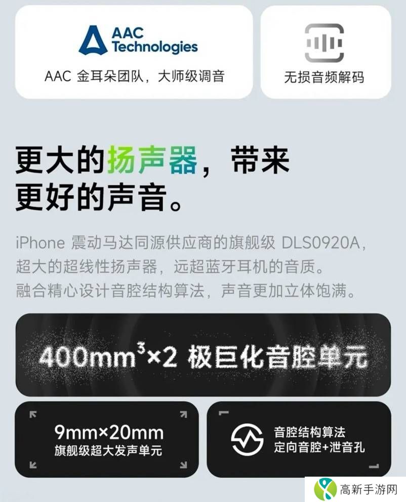 在音效方面,闪极A1首次采用了与iPhone Taptic Engine同源技术的瑞声科技超线性Hi-Fi扬声器,并配备了双DSP独立功放,能够输出高保真双声道立体声。得益于瑞声科技金耳朵团队的精心调音,以及独特的音腔结构算法设计,闪极A1的音质更加立体饱满,远超同类产品。