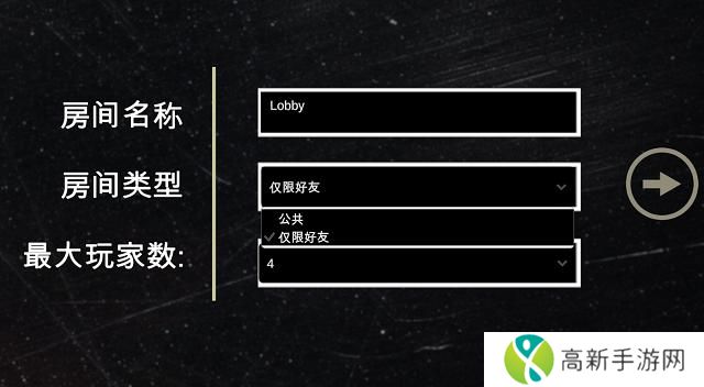 设置房间名称,房间类型(勾选仅好友)以及房间最大人数(2-4人),下一步;