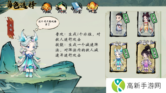 小龙女作为东海龙王的女儿,龙族血脉赋予了她极为强大的能力,能够如龙王般呼风唤雨, 生成水柱攻击敌人,甚至在进化后能够拥有化身为龙的强大技能。而龙女的专属武器则是神奇的魔术海螺,可以召唤海绵、海星和章鱼对敌人进行攻击。