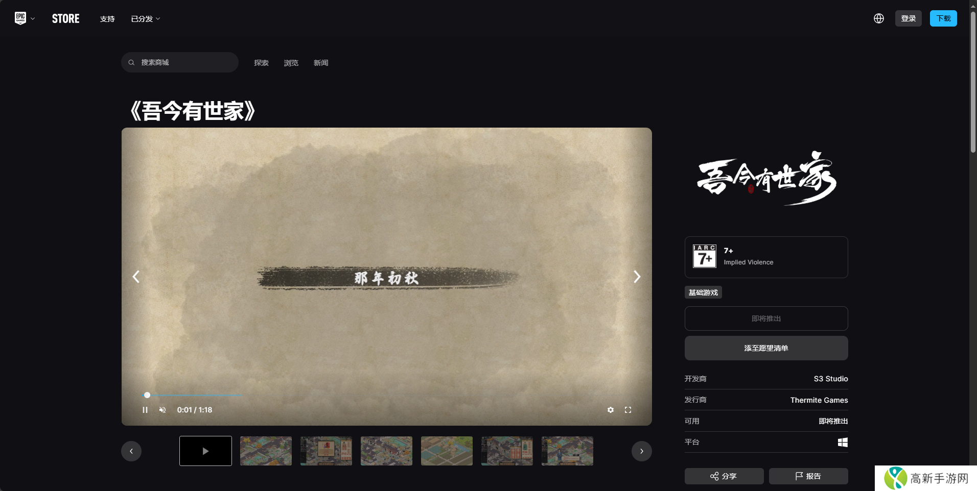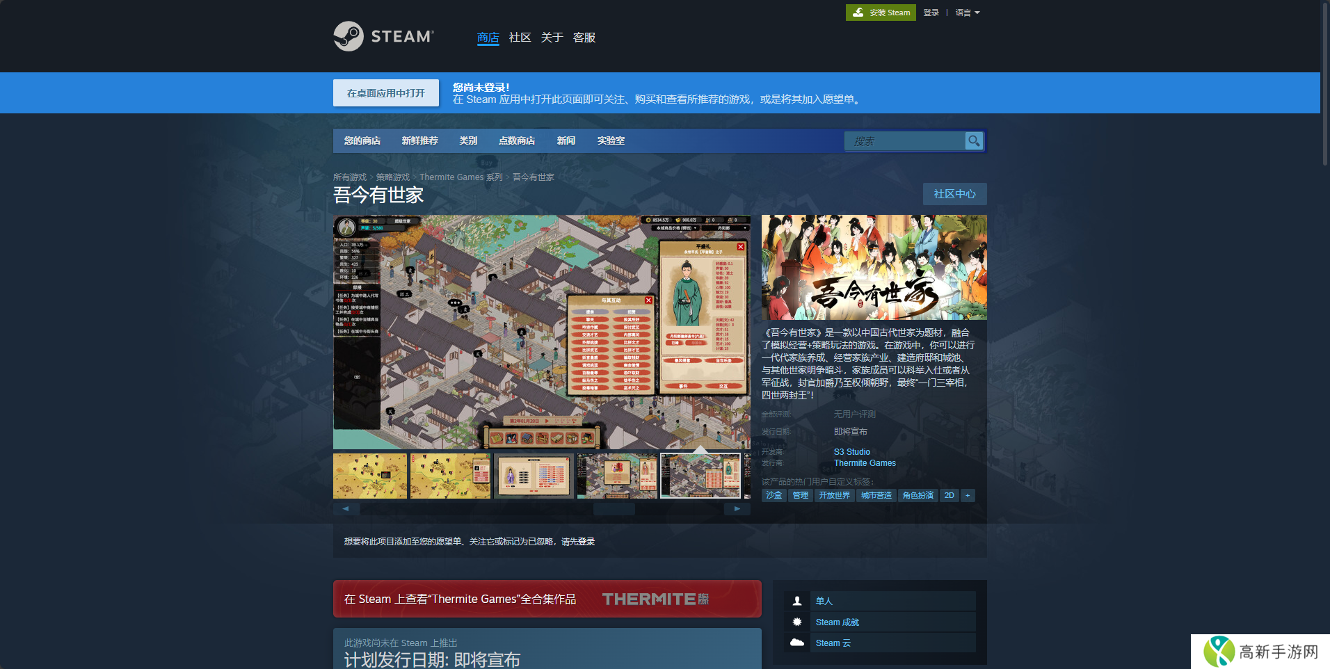 《吾今有世家》是一款以中国古代世家为题材,融合了模拟经营+策略玩法的游戏。而这款游戏的官网地址就是一个官网页面,另外Steam平台的购买页面也算官网,进入到这个游戏的购买页面基本上就能知道所有这款游戏的信息。