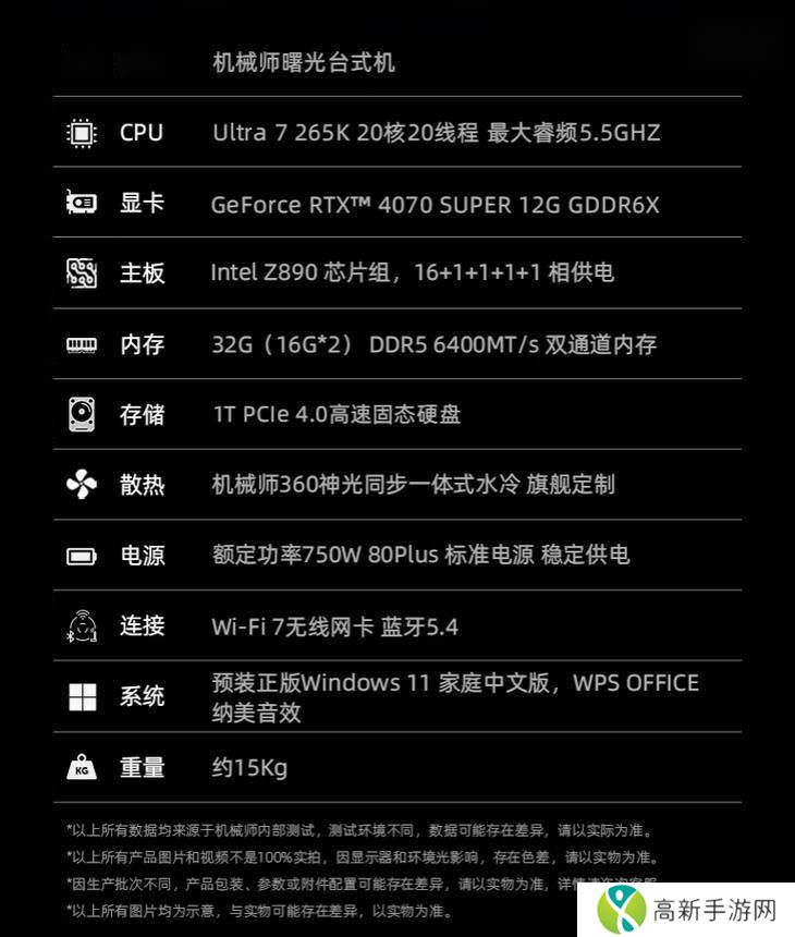 在硬件配置上,这款电竞主机采用了高端的Z890主板,搭配了32GB DDR5 6400高频内存,确保了系统的流畅运行。同时,它还配备了1TB的PCIe 4.0 SSD,提供了快速的数据读写能力。显卡方面,主机搭载了RTX 4070 SUPER显卡,能够轻松应对各种高要求的游戏和图形处理任务。
