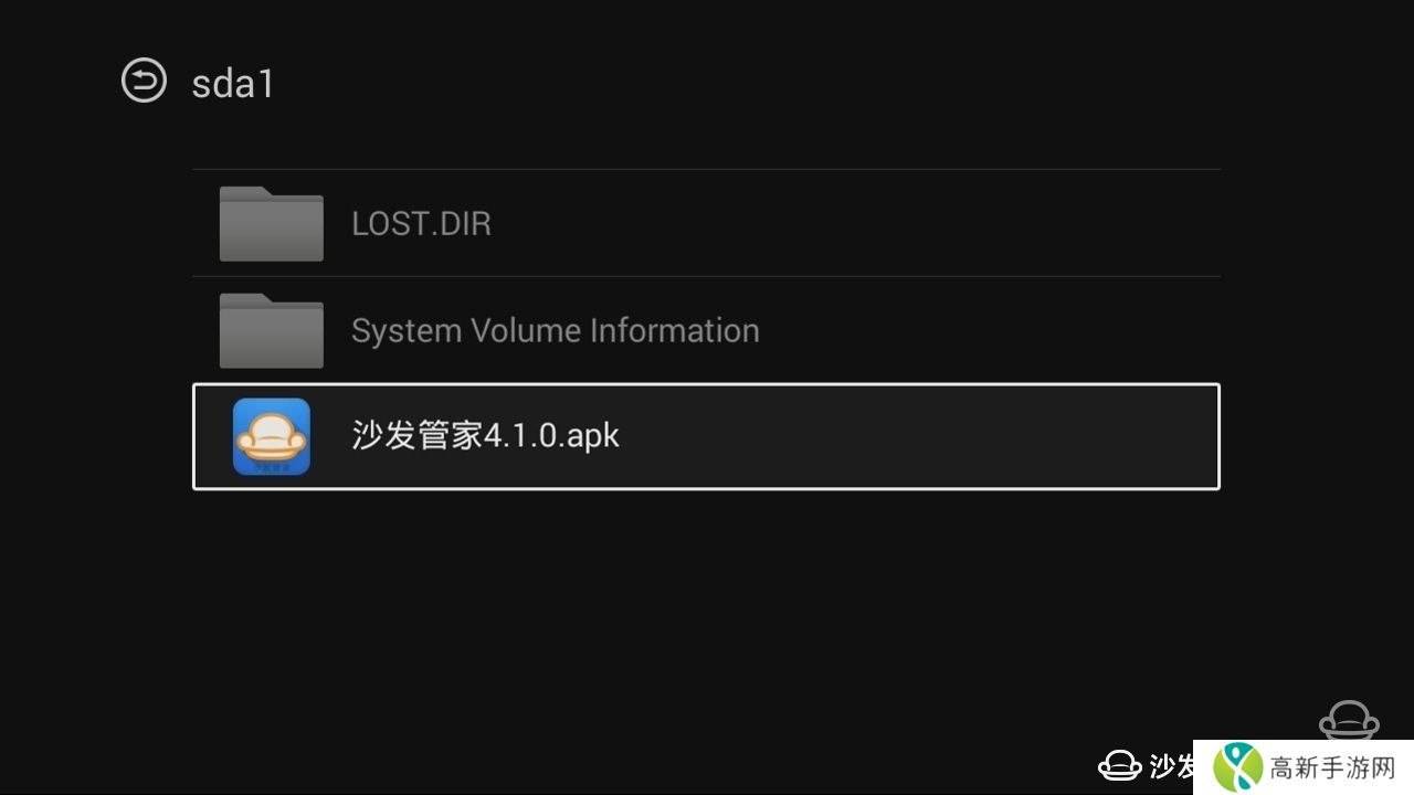 4. 选择sda1,进入U盘中找到沙发管家apk安装包,点击后安装提示进行安装即可。