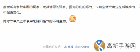 截至发稿前,“《怪猎荒野》确定追加中文语音”词条登上了贴吧热议榜的第二名,众多玩家纷纷对此表示认可,说道:“这下没有任何不买的理由了!”鉴于此前有玩家曾向卡普空请愿为《怪物猎人:荒野》添加中配,有玩家表示:“感谢所有争取中配的玩家,尤其请愿的玩家,因为你们的努力,卡普空才会确定在后续推出中配语音包。”