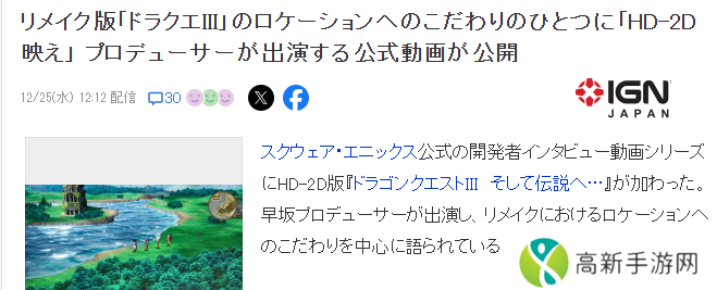 SE旗下《勇者斗恶龙3:HD-2D重制版》11月发售以来,收获普遍好评,销量不断攀升,日前制作总监接受采访谈到了游戏的核心理念,就是强化“外景”的制作。
