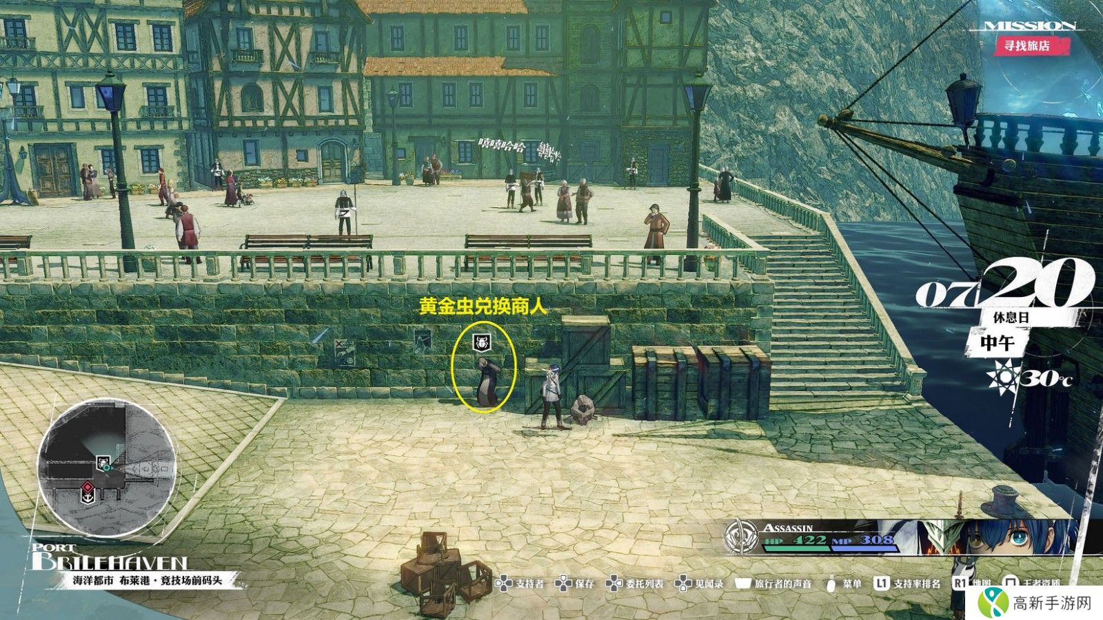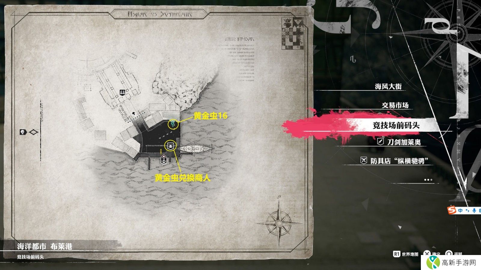 7月20日,白天,海洋都市布莱港,竞技场前码头,北部如图位置,获得黄金虫16。港口木箱旁,找到黄金虫兑换商人。
