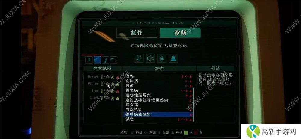 再者是游戏内指引很弱,很多时候玩家会不知道该干什么,比如动物很多的时候抽血与清理**物会非常麻烦。如果找不到哪只动物还没有抽血,那样就可能会卡关;然后如果你想要走一个比较好的结局,那么就不能击杀动物,如果不击杀动物,那就必须制作药物来治愈它们,而制药的这个过程也是非常缺乏指引,几乎要靠玩家们一点一点去尝试这个过程也是比较大折磨。