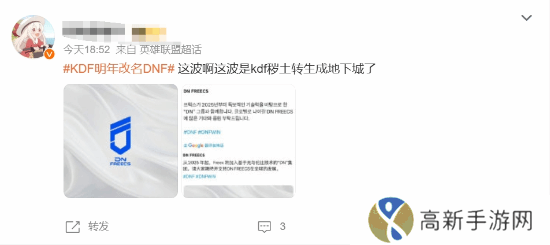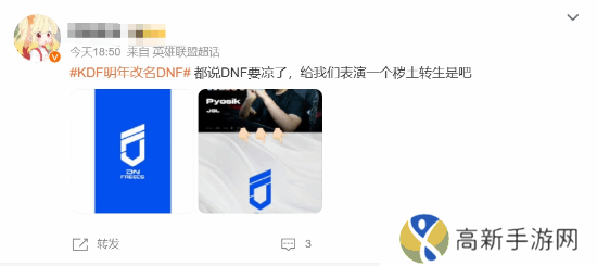 公告发布后,由于新战队名称的缩写和知名网游《地下城与勇士》的缩写相同,相关话题“KDF明年改名DNF”也登上了微博热搜,引发了网友的讨论。