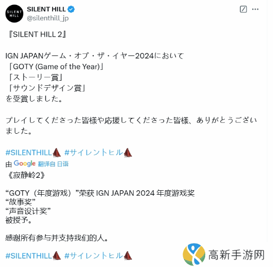 《寂静岭》官方推特账号也发布推文,特别感谢所有玩家和支持者的热情参与和支持。