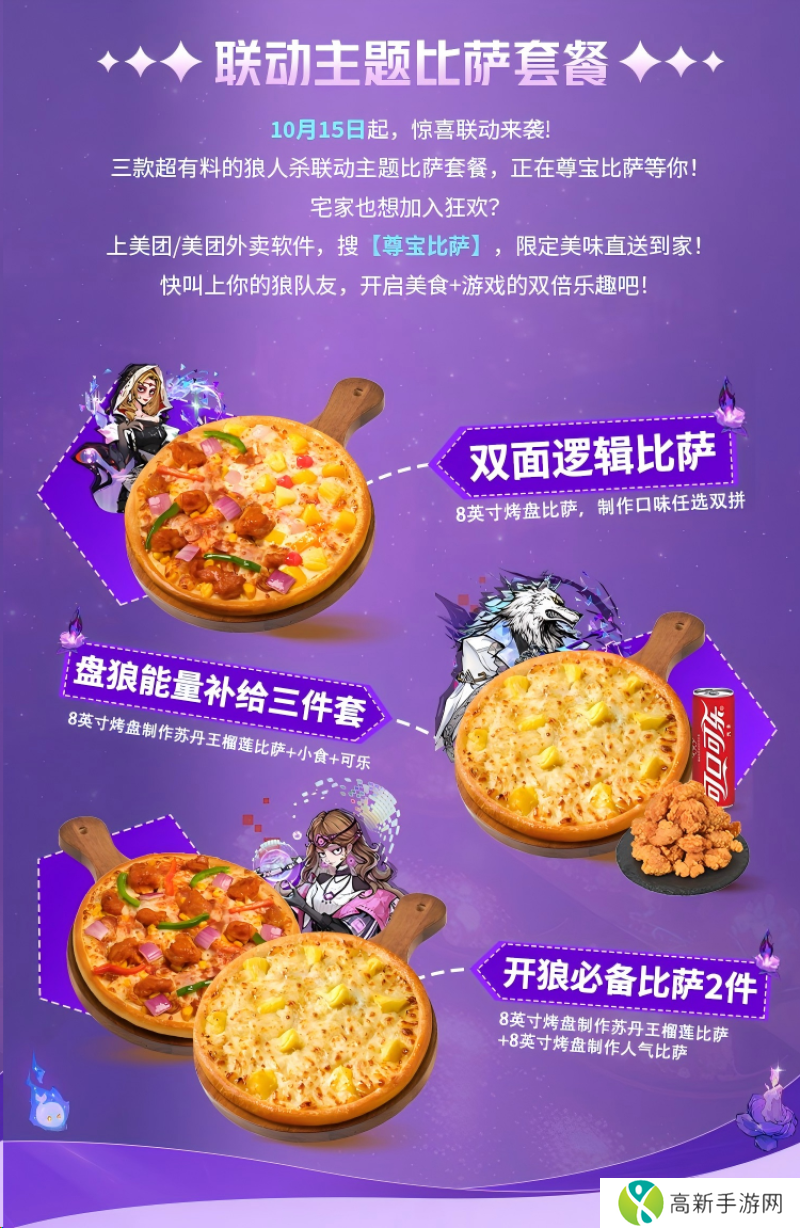 即日起登录美团/美团外卖App搜索尊宝比萨,即可进店领取品牌专属红包,超值优惠畅享狼人杀联动主题比萨套餐,选择外送到家,足不出户