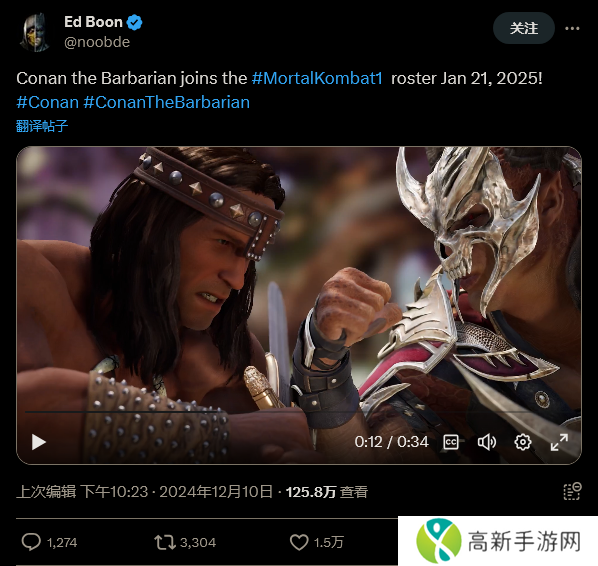 《真人快打1》新角色“野蛮人柯南”将于2025年1月上线