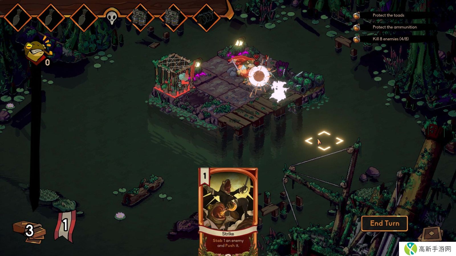 在回合制战术和Roguelike牌组构筑相结合的挑战中,带领一群蟾蜍与萨梅迪男爵的邪恶势力作斗争。协同卡牌效果,建立定居点并参与战略战斗,在被诅咒的长沼兴旺发展。