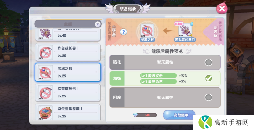 两种继承都是精炼等级越高,继承时消耗的资源也就越多。