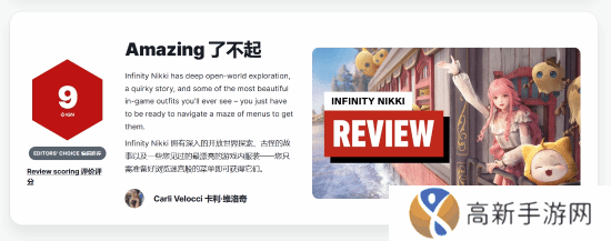 IGN发布了《无限暖暖》的媒体评测文章,给出了9分的高分。