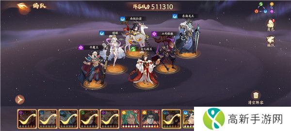 坦克推荐龙王(或李靖),单点输出推荐黑猴(或白骨)。配速为嫦娥1速,黑猴2速,国王3速,南极与龙王45速,牛魔尾速。站位固定,如图所示。